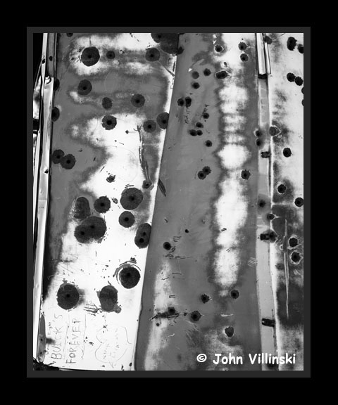 Abandoned vehicles are not immune from the occasional graffiti "artist." Fortunately, they are not always the best grammarians, as evidenced by the "Strait Eight Buick's Forever" phrase.