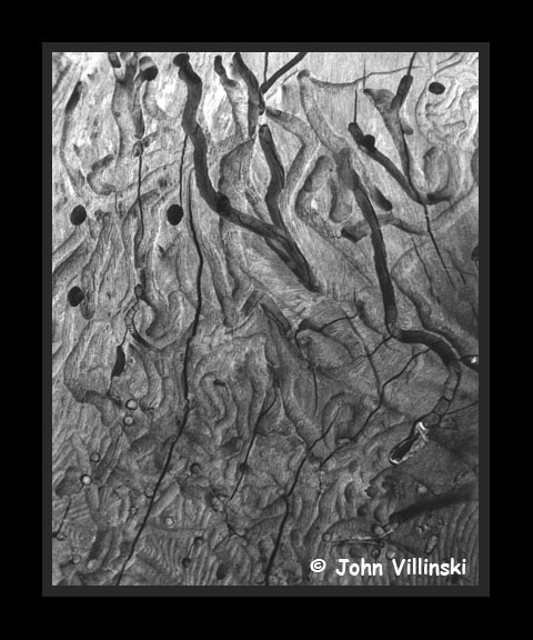 pine beetles. The adult beetles bore into the tree and lay their