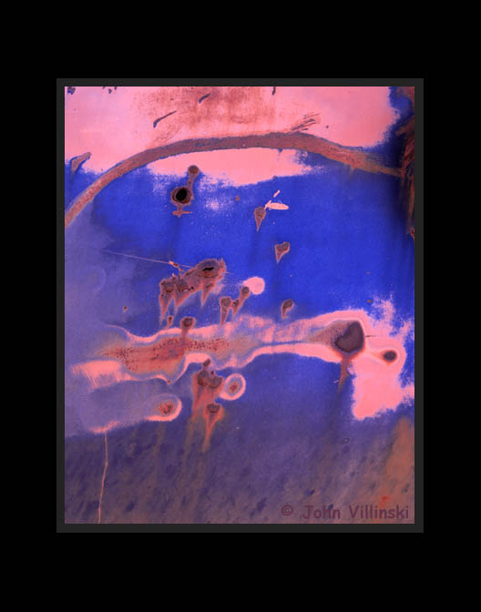 layers of paint, and oxidation (rust) and bullet holes resulted