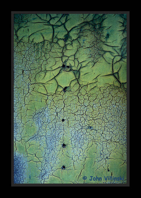 say, the paint had been weathered away, revealing the cracked shingle