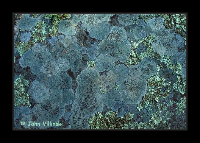 Various lichen covering a granite boulder in the dep shade of Ponderosa Pine forest, Chiricahua Mountains, 2006.