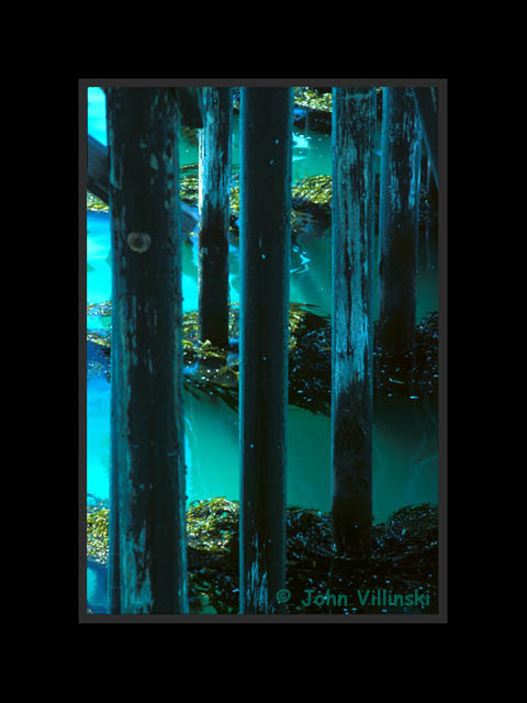 the salt-encrusted pilings would pick up a blue tint being in shadow,