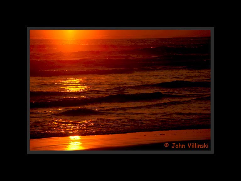 A good sunset over the ocean provides an opportunity to make a study in orange and purple. I was camping on a beach south of Ensenada in July 2002 when I took this photo.