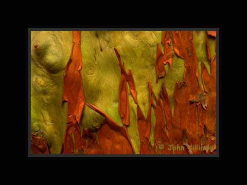 green and red colors. The paper-thin red bark peels as the tree